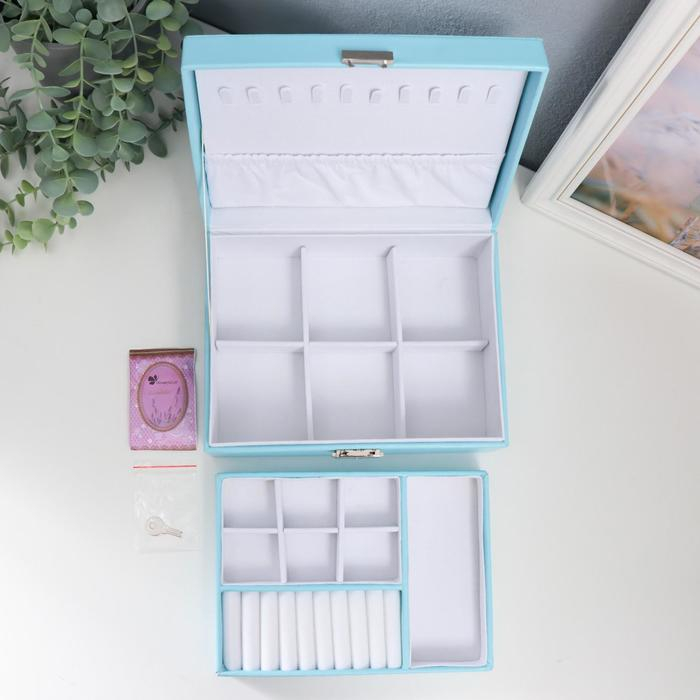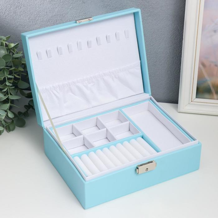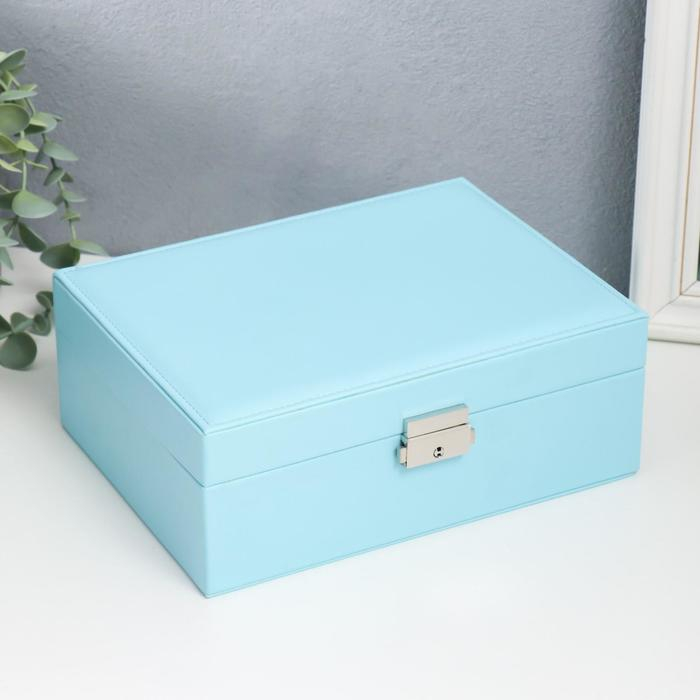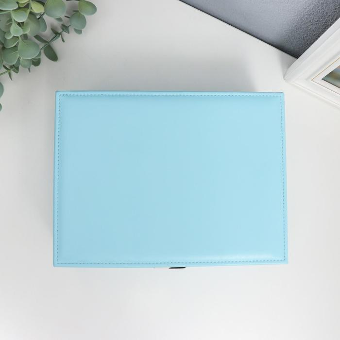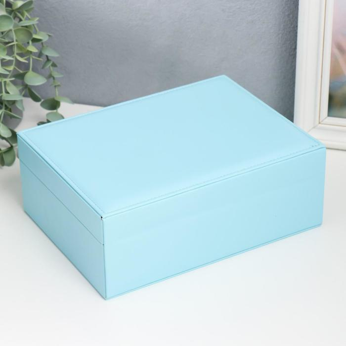 Шкатулка кожзам для украшений "Голубая матовая" 9х23х17 см