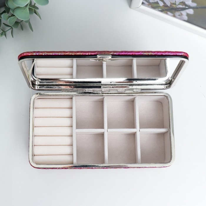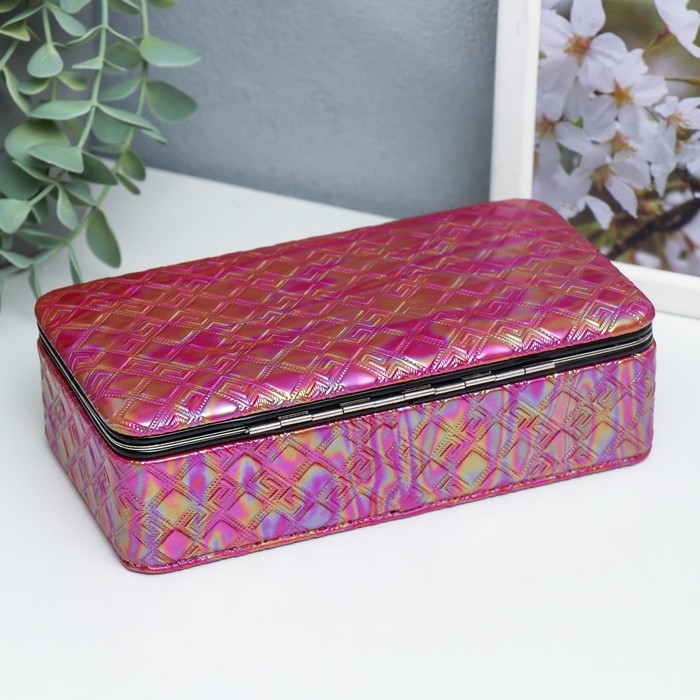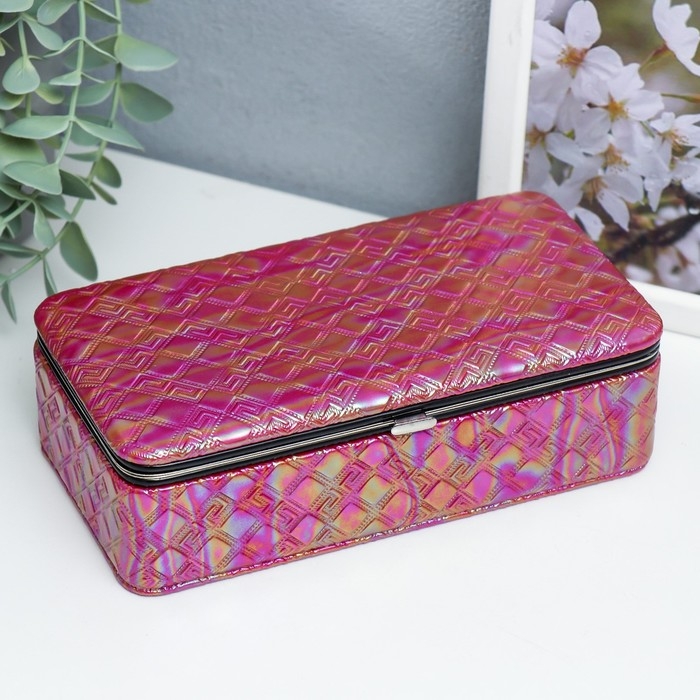 Шкатулка кожзам для украшений "Греческий узор. Фуксия перламутр" 6х9,8х18,5 см