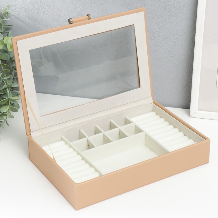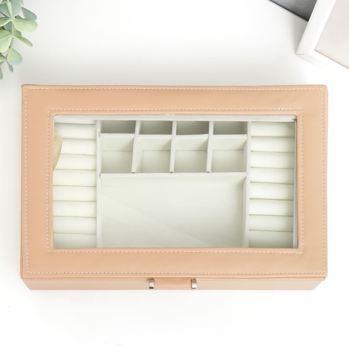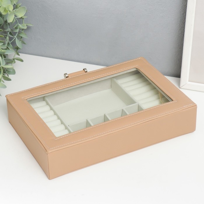 Шкатулка кожзам для украшений "Хэмптонс" бежевая 5,5х27х18 см