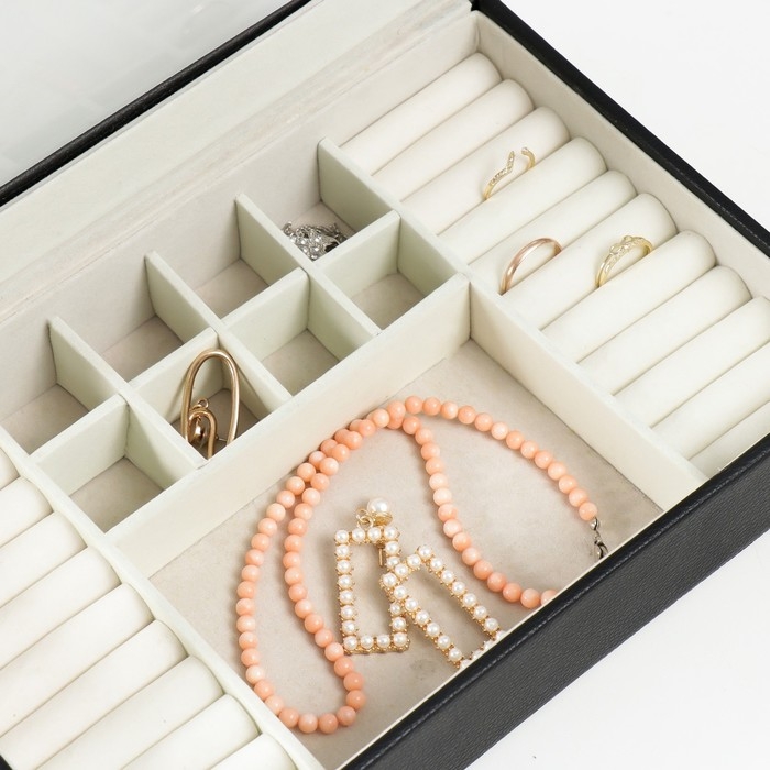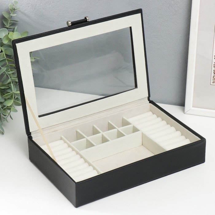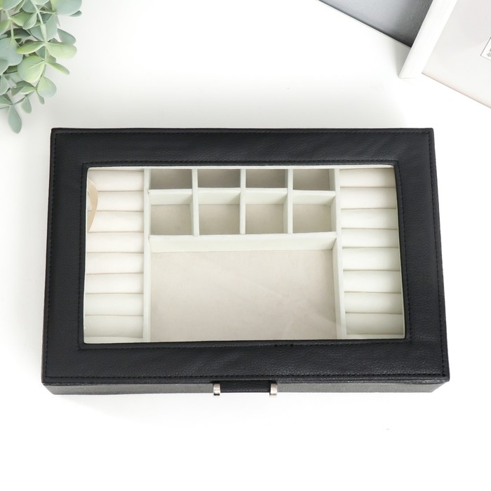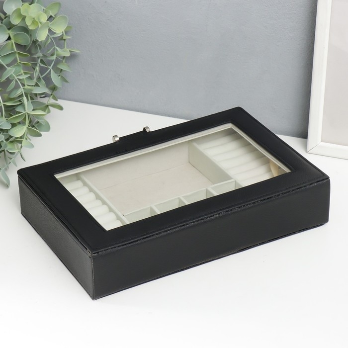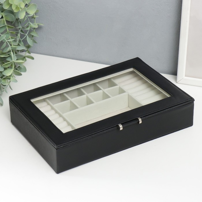 Шкатулка кожзам для украшений "Хэмптонс" чёрная 5,5х27х18 см