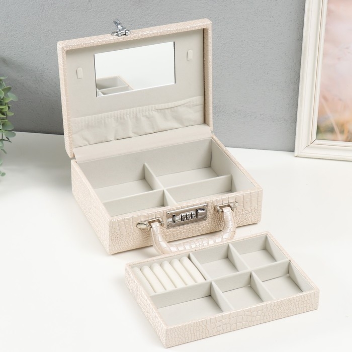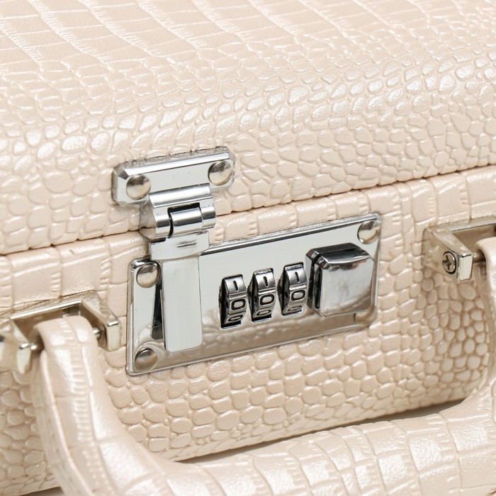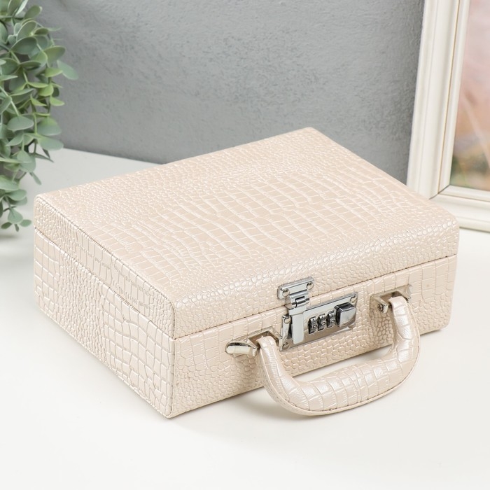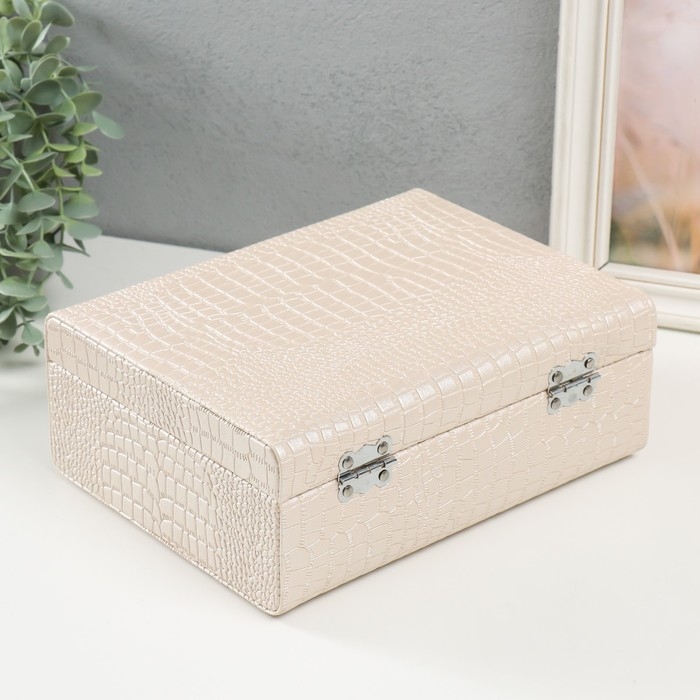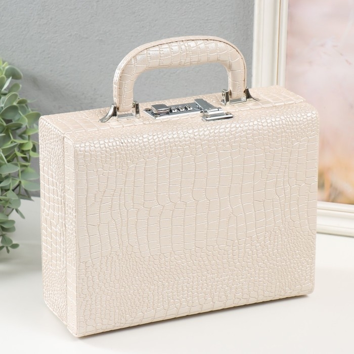 Шкатулка кожзам для украшений "Кейс. Кожа крокодила" бежевая 18,5х24х9 см
