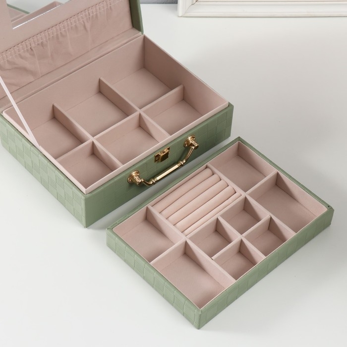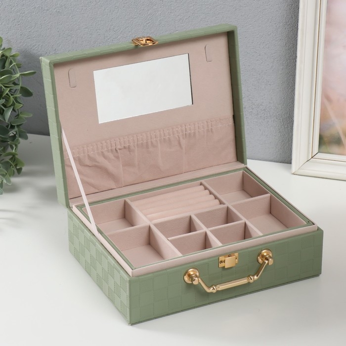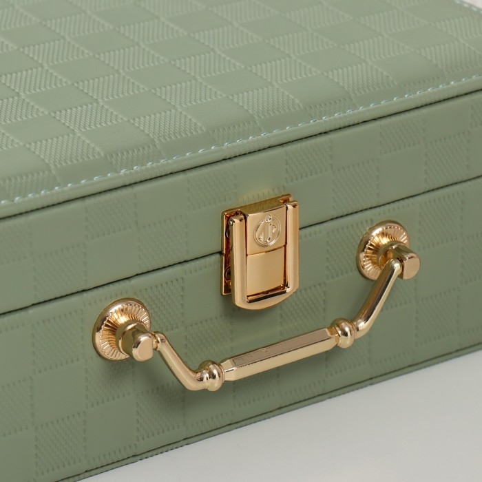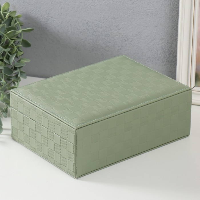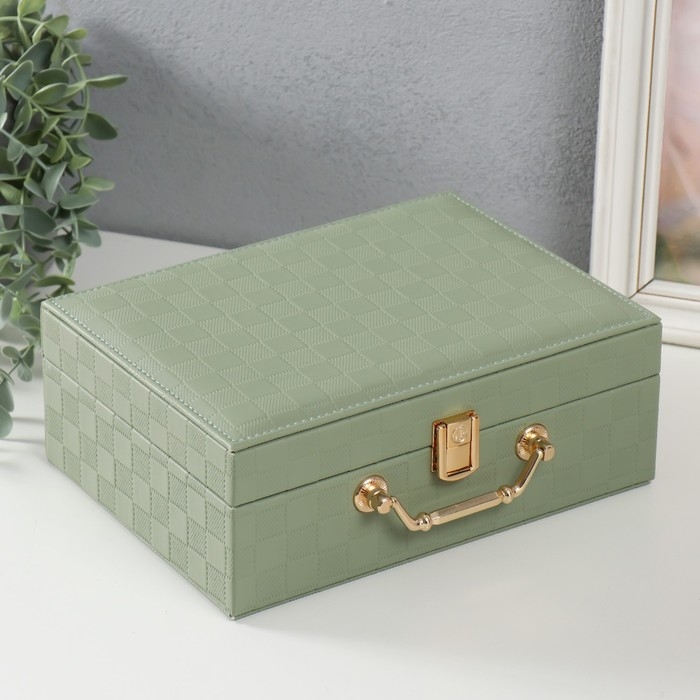Шкатулка кожзам для украшений "Кейс. Шахматка" зелёная 17,5х24х9 см