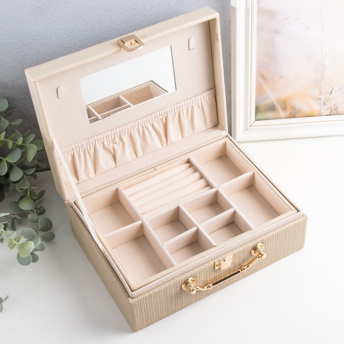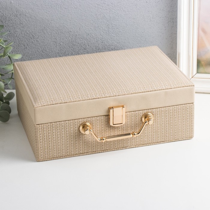 Шкатулка кожзам для украшений "Кейс. Текстура" бежевая 24х17,5х9,5 см