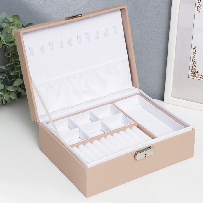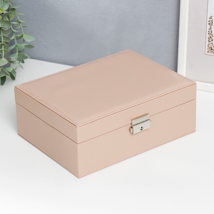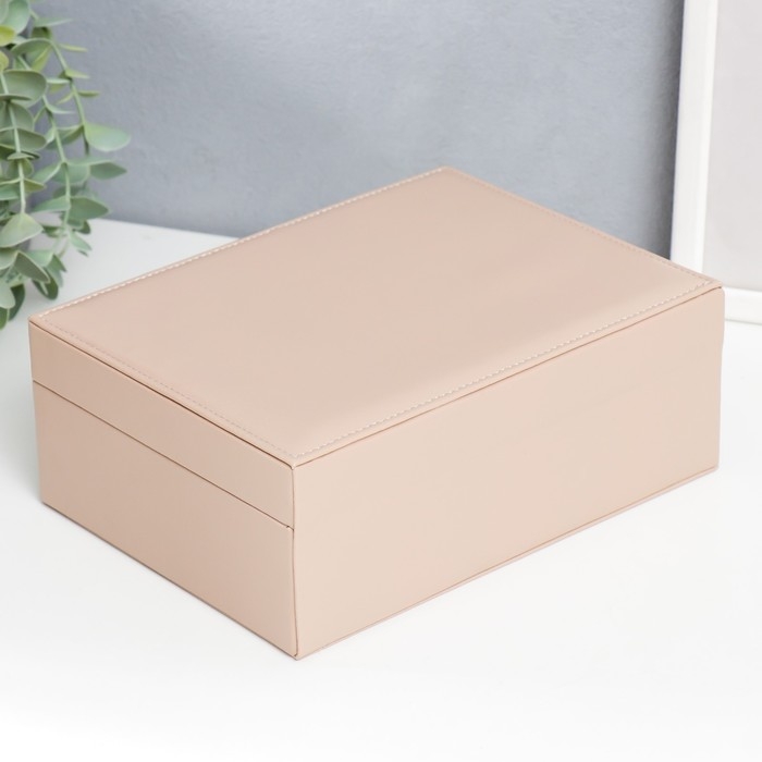 Шкатулка кожзам для украшений "Кремовая матовая" 9х23х17 см