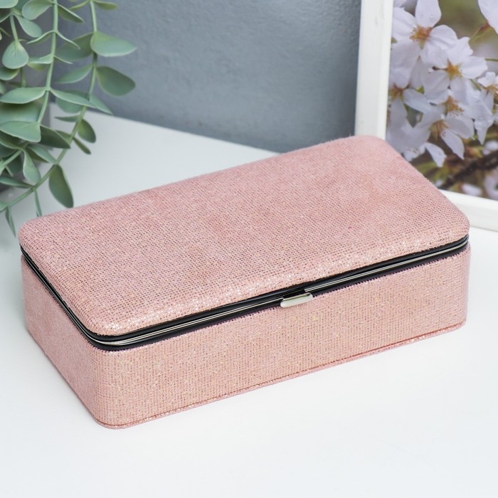 Шкатулка кожзам для украшений "Мелкие квадратики. Розовый" 6х9,8х18,5 см