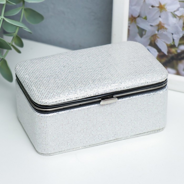 Шкатулка кожзам для украшений "Мелкие квадратики. Серебро" 6х7х12 см