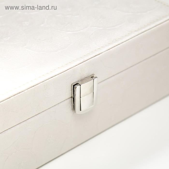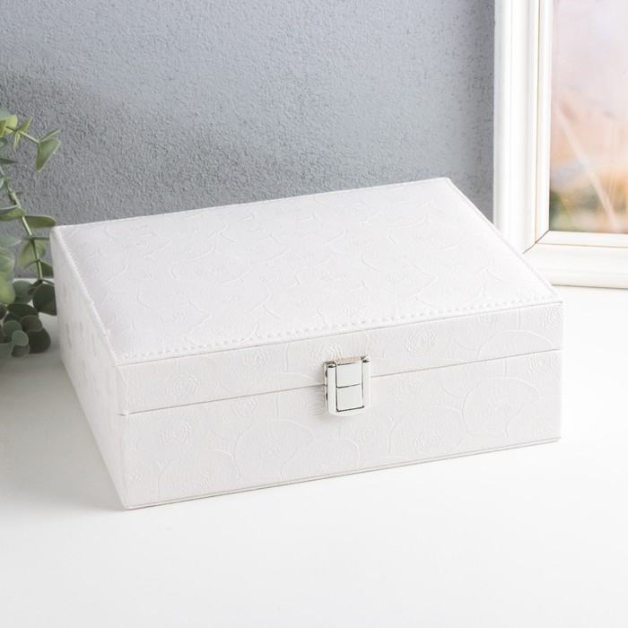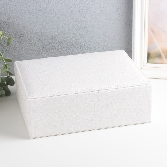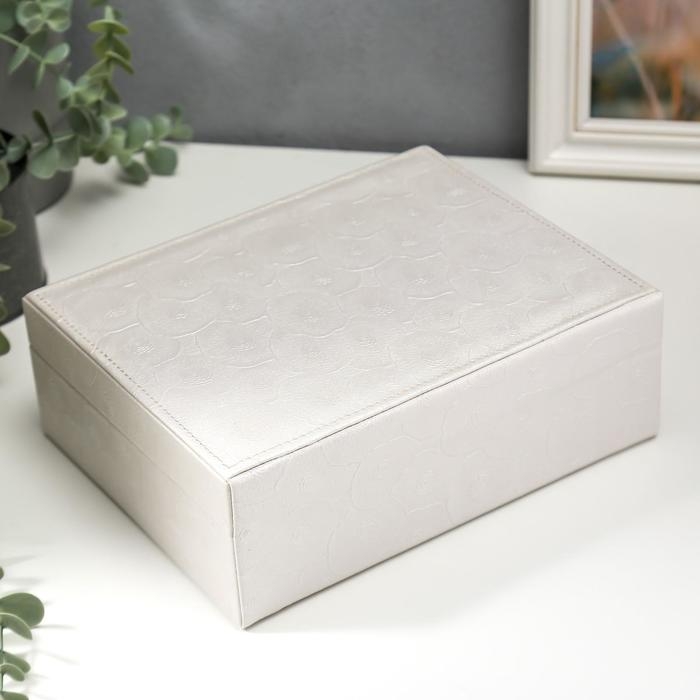 Шкатулка кожзам для украшений "Пионы и лепестки" белая 8,5х23,5х18,5 см