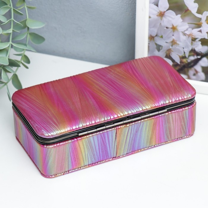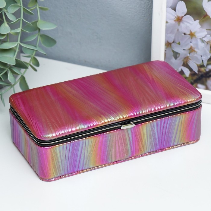 Шкатулка кожзам для украшений "Полосы.Текстура. Красная переливы" 6х9,8х18,5 см