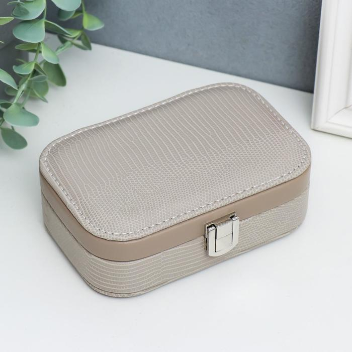 Шкатулка кожзам для украшений "Рептилия серая" миниатюра комбинированная 4,5х10х15 см