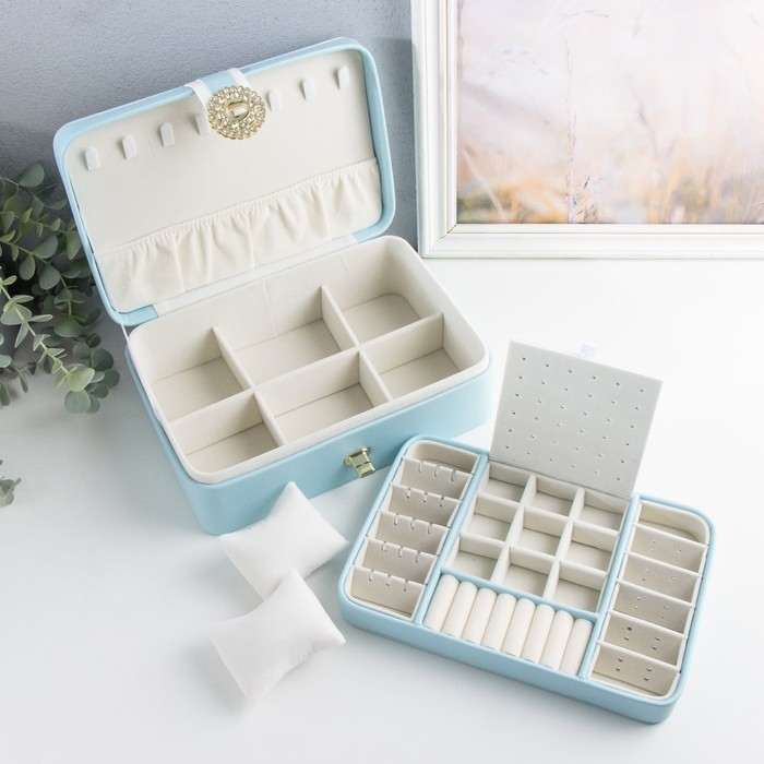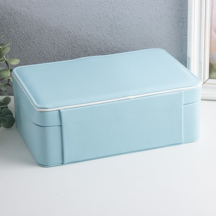 Шкатулка кожзам для украшений "С пряжкой" голубая 24х18,5х9 см