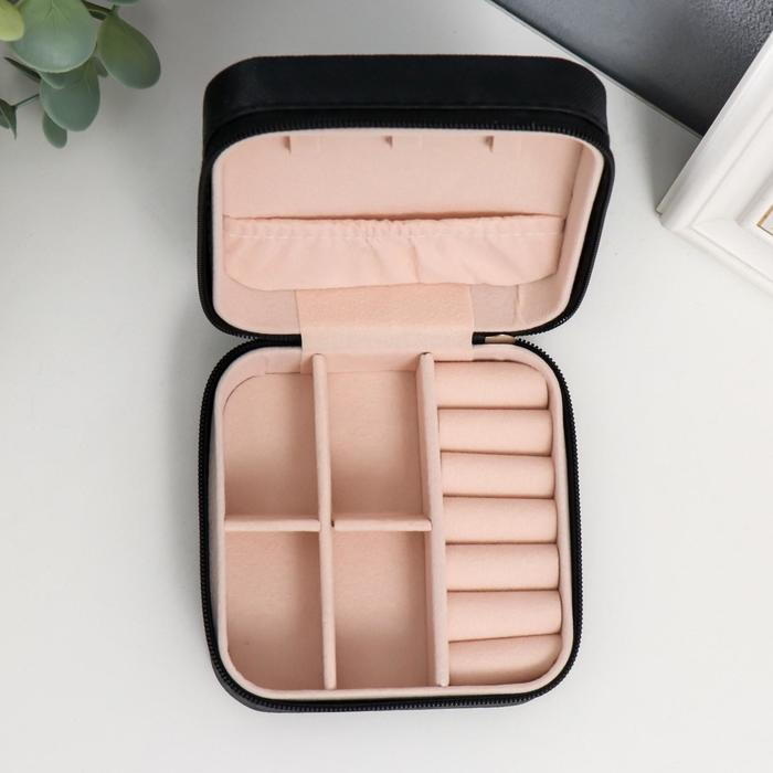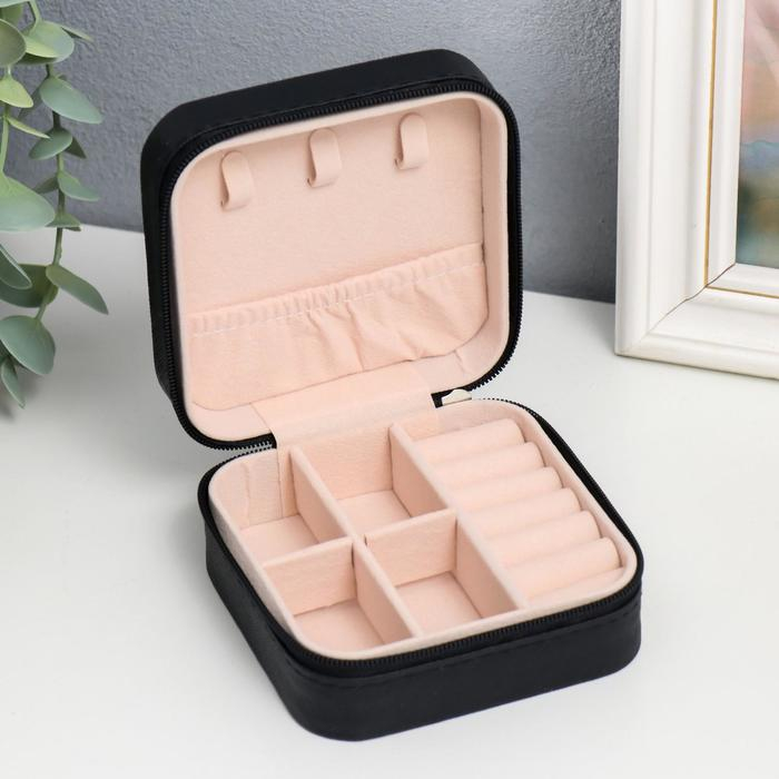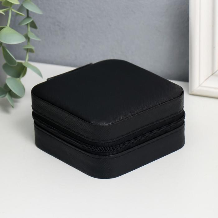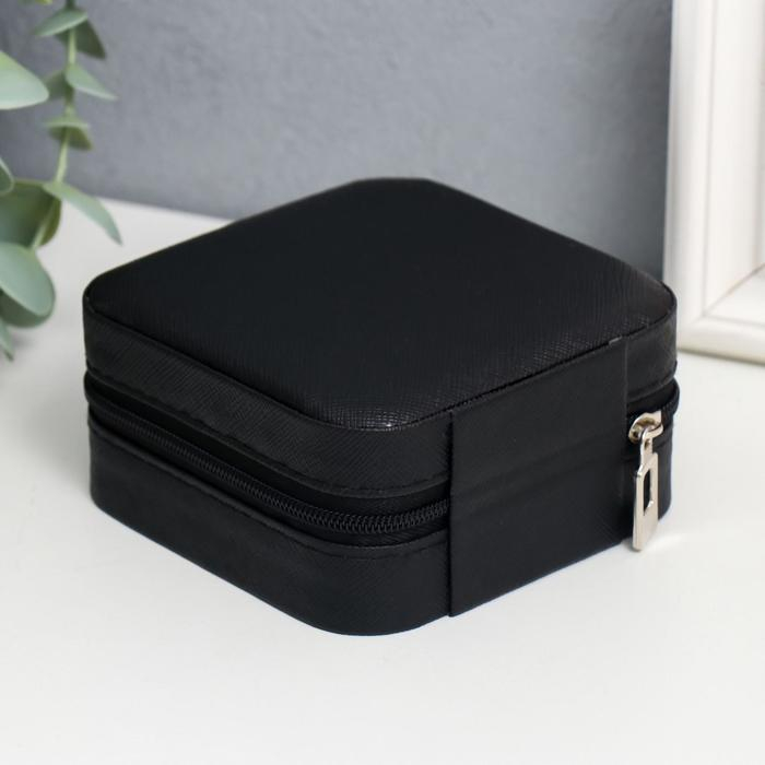 Шкатулка кожзам для украшений "Штрихи. Чёрная матовая" 5х10х10 см