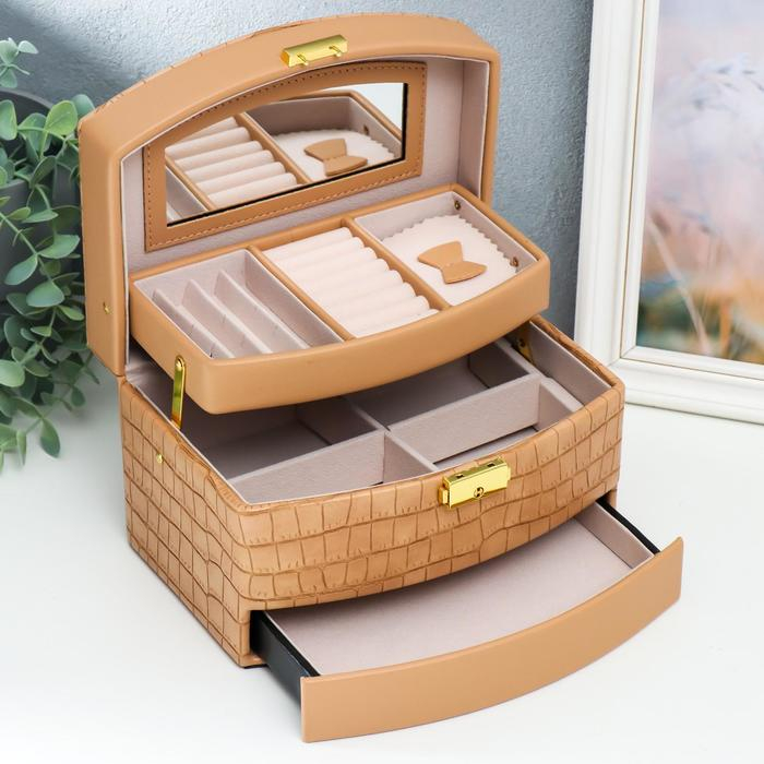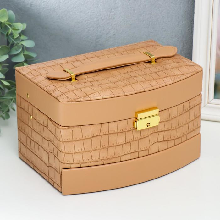 Шкатулка кожзам для украшений сундучок "Карамель питон" комбинированная 13х15х21,5 см
