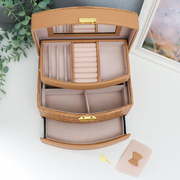Выдвижные ящики, Для украшений, С внутренней обивкой, С делениями, С замочком, С зеркалом