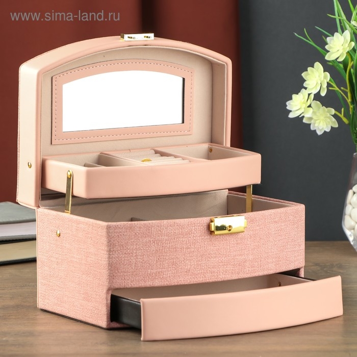Шкатулка кожзам для украшений сундучок "Розовая" комбинированная 13х15х21,5 см