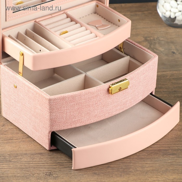 Выдвижные ящики, Для украшений, Под сережки, С внутренней обивкой, С делениями, С замочком, С зеркалом