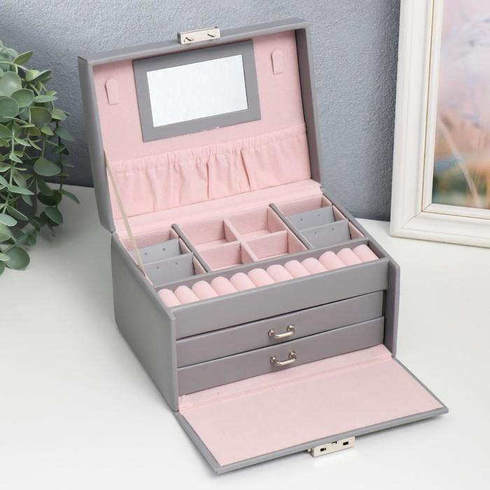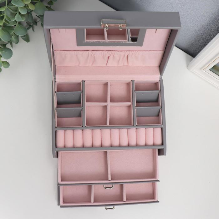 Шкатулка кожзам для украшений сундук "Гладкость. Матовый серый" 11х18х13,7 см