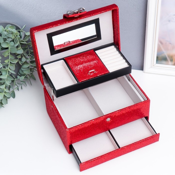 Выдвижные ящики, Для украшений, С внутренней обивкой, С делениями, С замочком, С зеркалом