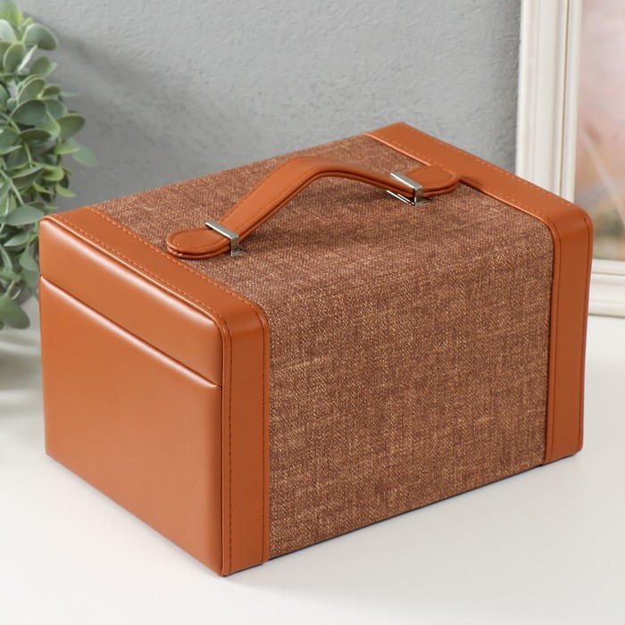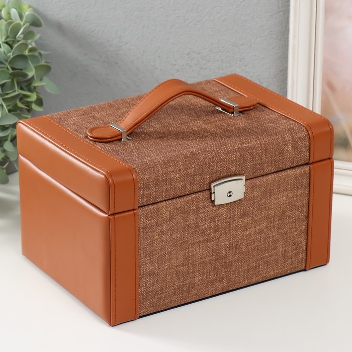 Шкатулка кожзам для украшений сундук "Шоколад" комбинированная 23,5х16,5х14,5 см