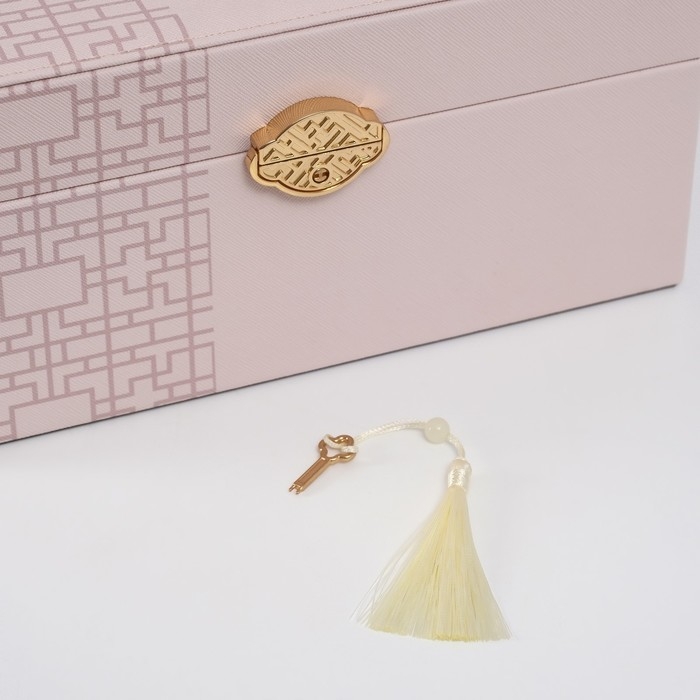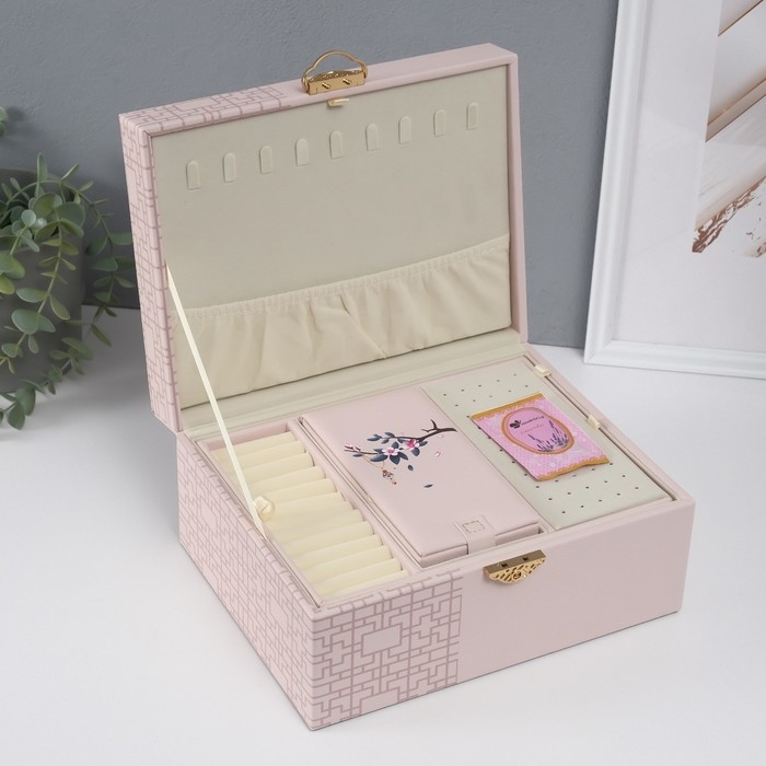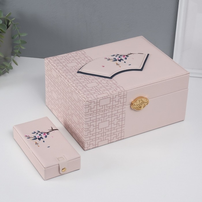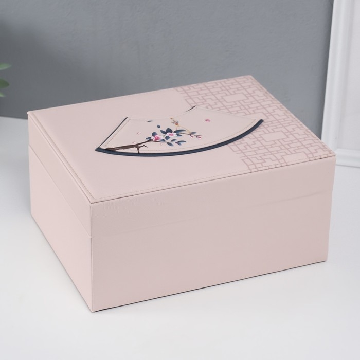 Шкатулка кожзам для украшений сундук"Кулон на сакуре. Узоры" бежевая" 26х20х13 см