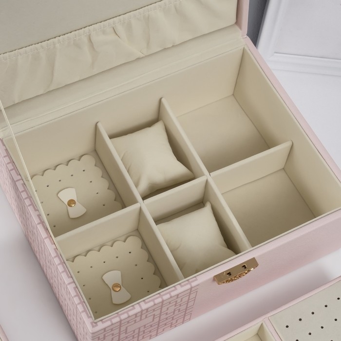 Для украшений, Под сережки, Под часы, С внутренней обивкой, С делениями, С замочком, С зеркалом