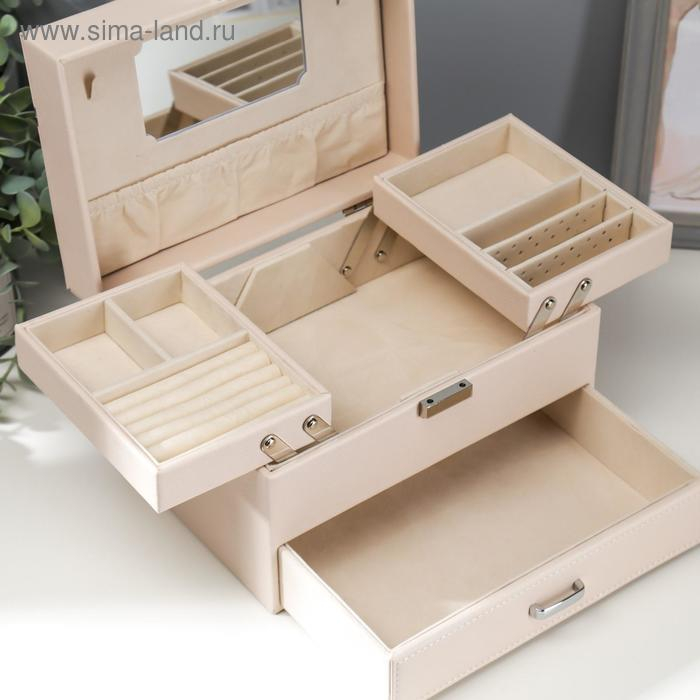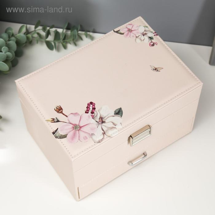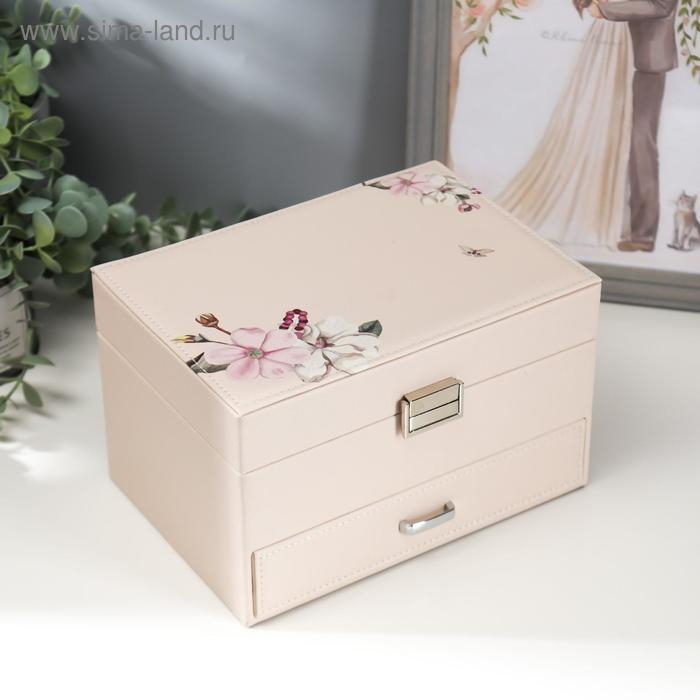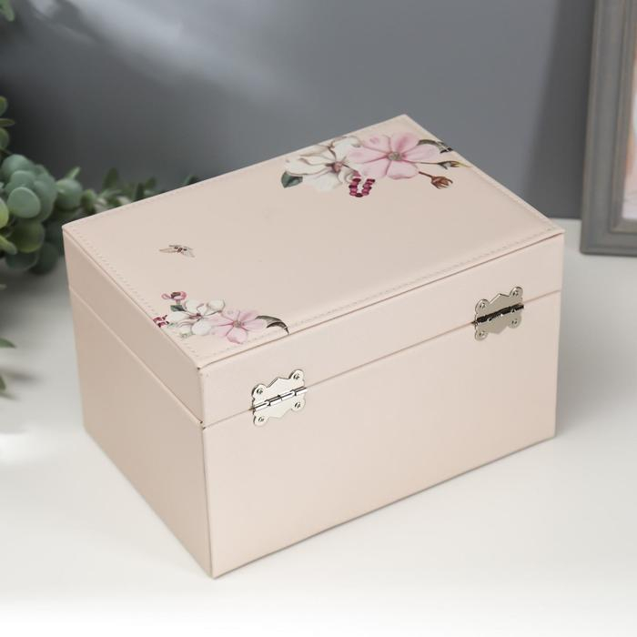 Шкатулка кожзам для украшений "Яблочный цвет" молочная 14х16х22,5 см