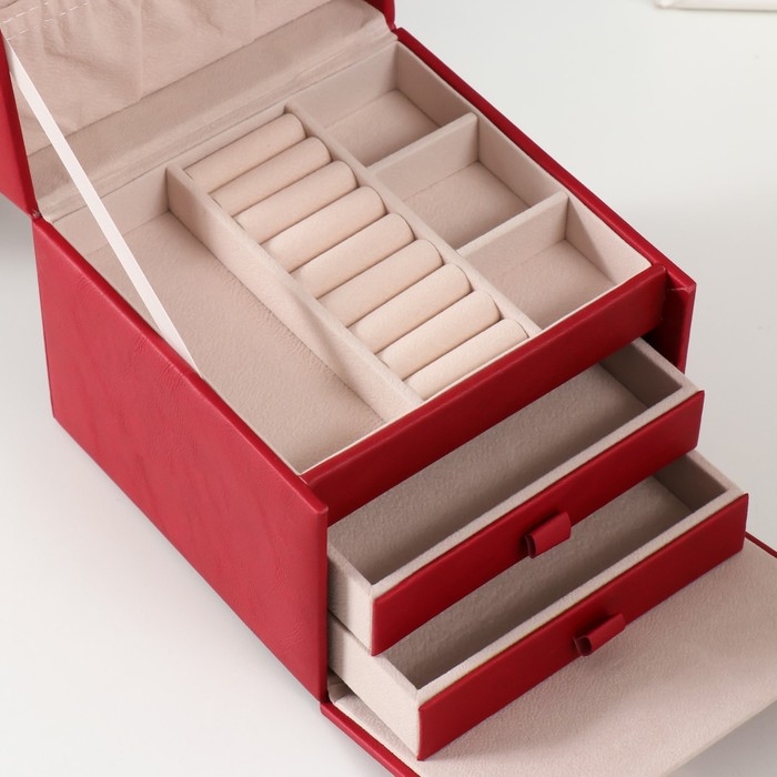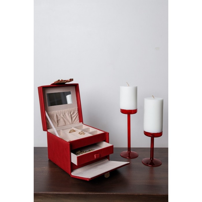 Выдвижные ящики, Для украшений, С внутренней обивкой, С делениями, С замочком, С зеркалом
