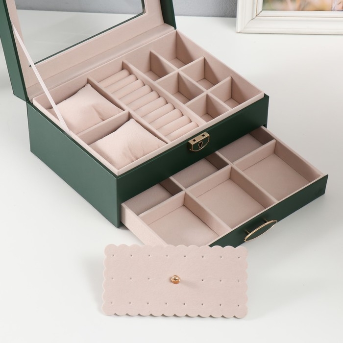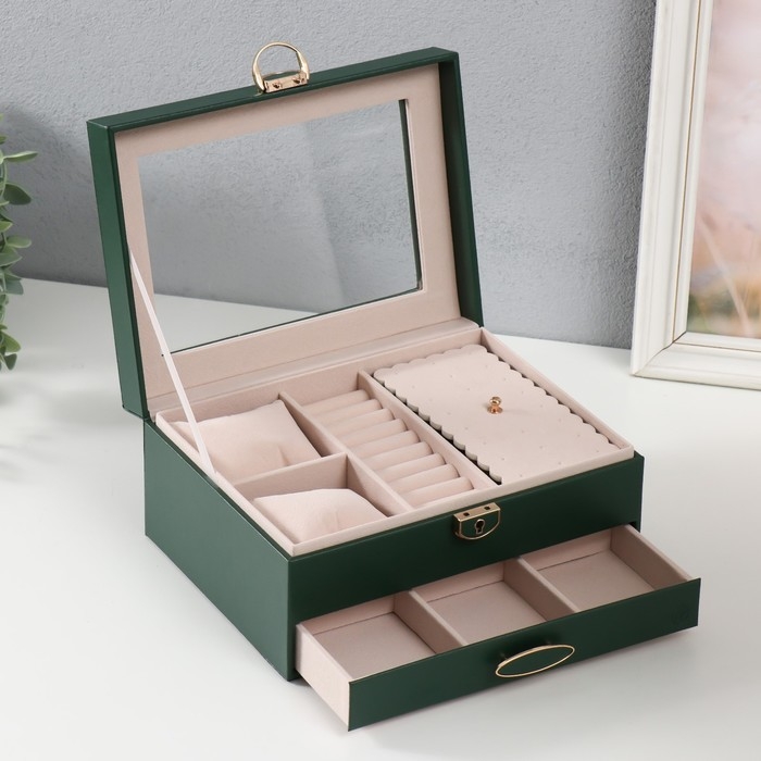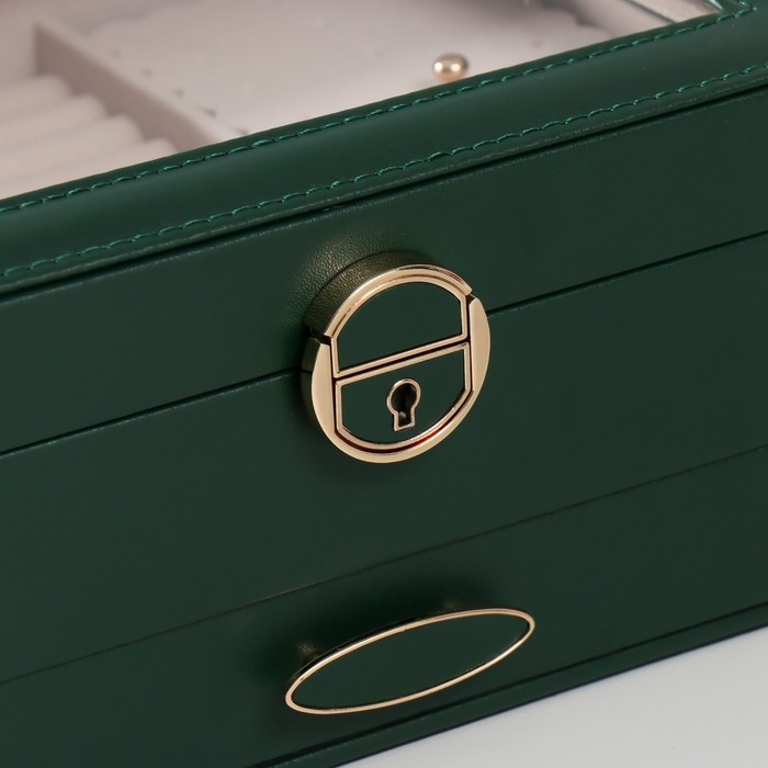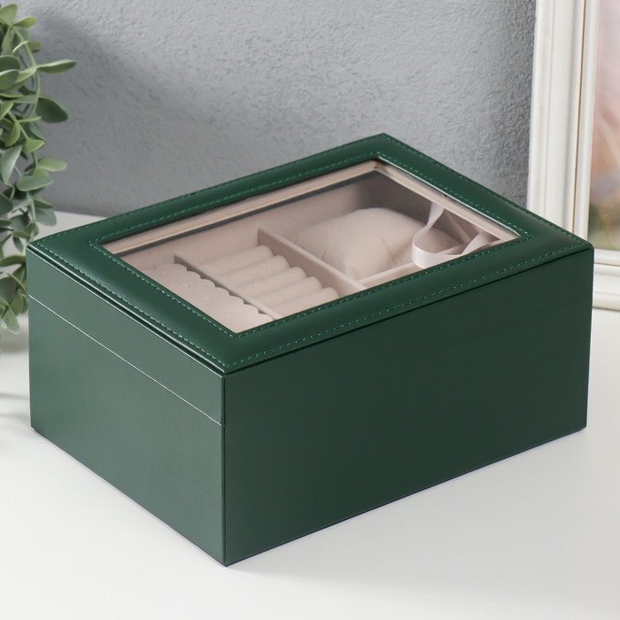 Шкатулка кожзам под часы 2 отделения и бижутерию "Кайла" зелёный 17х23х11 см