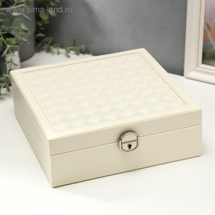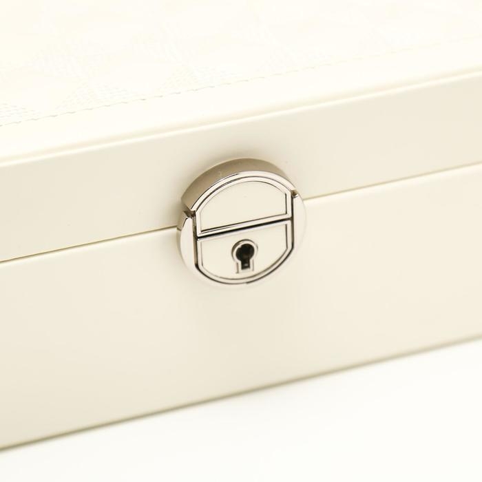 Шкатулка кожзам под часы 2 отделения и бижутерию "Ромбы белые" матовая 8,5х25х25 см