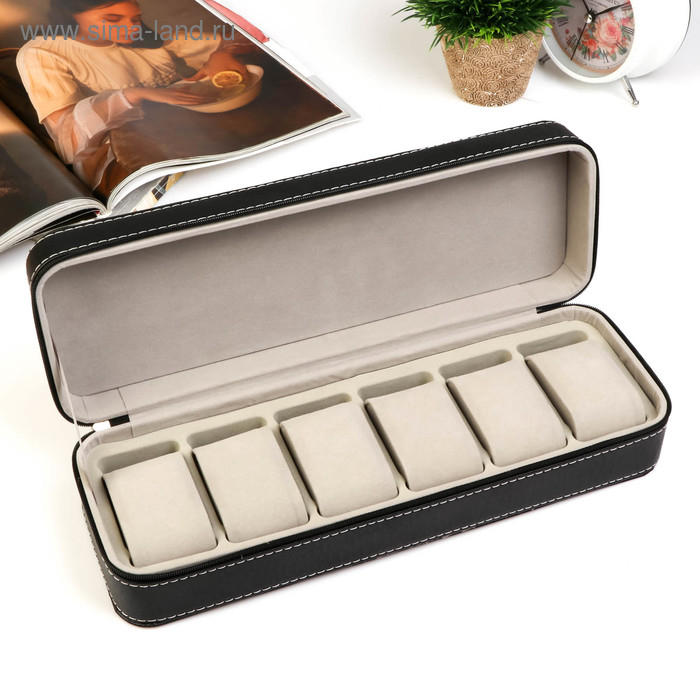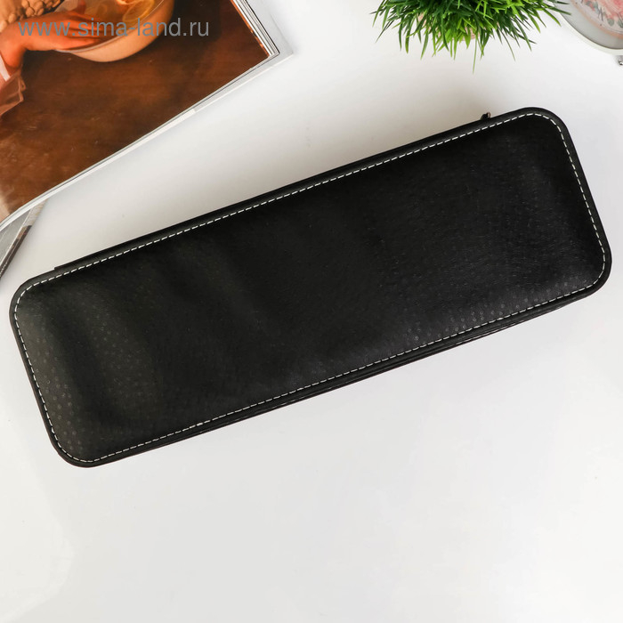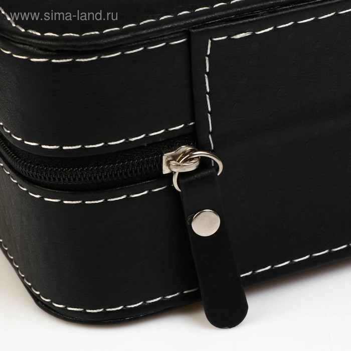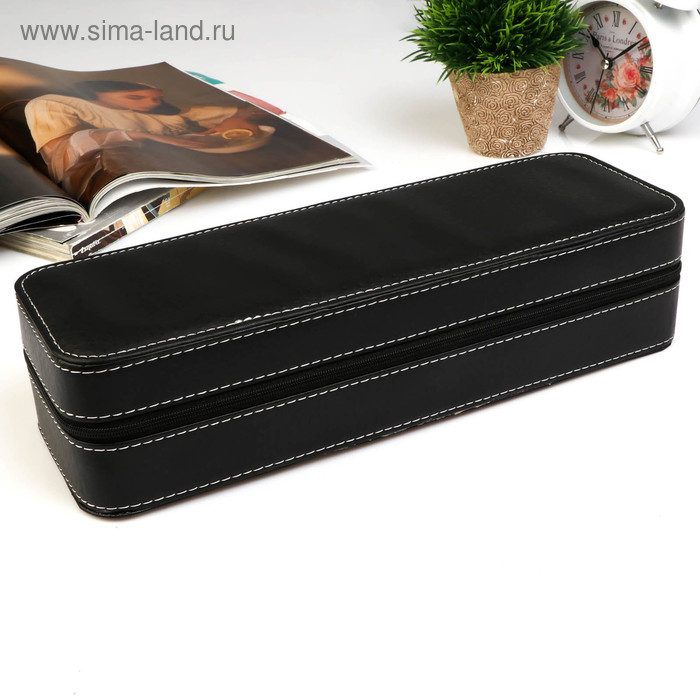 Шкатулка кожзам под часы 6 отделений "Чёрная с белой строчкой" на молнии 7,5х11х33 см