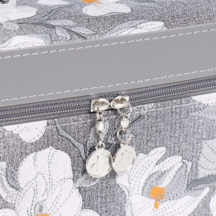 Шкатулка кожзам с зеркалом "Цветы. Серый" набор 3 шт 18х10х12,5 21х13х15,5 23х15х18,5 см