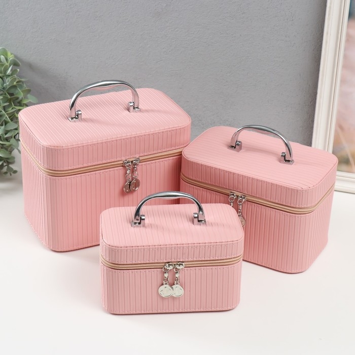 Шкатулка кожзам с зеркалом "Локки. Розовый" набор 3 шт 21х13,5х13;18,5х10,5х10;16,5х15х23 см