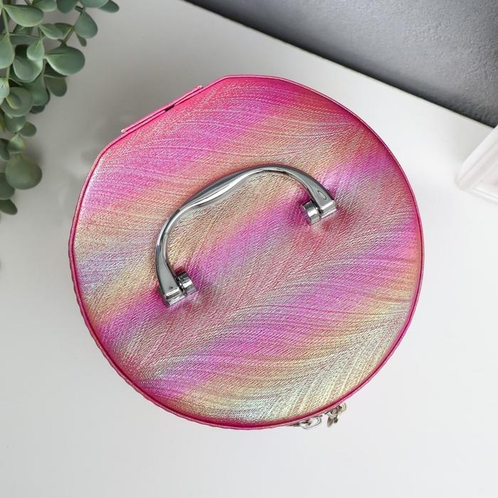 Шкатулка кожзам с зеркалом "Полосы розовый оранж" н-р 3шт 14х14х14 17,5х17,5х17,5 20х20х20см 53860