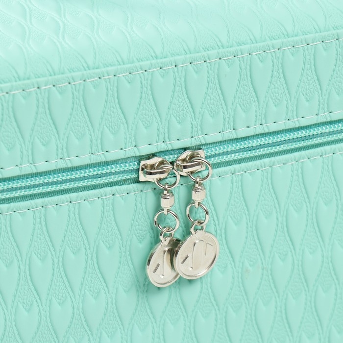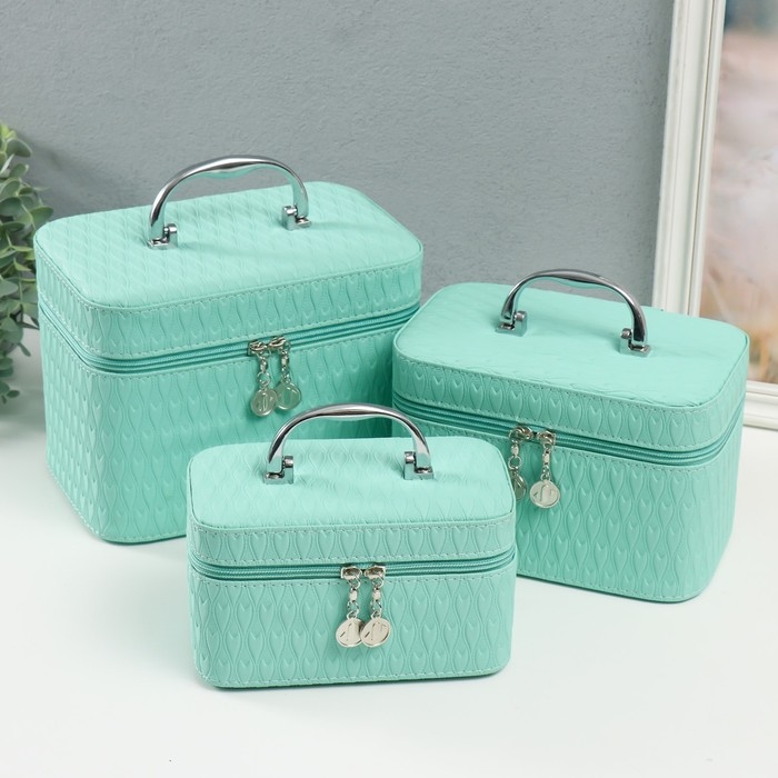 Шкатулка кожзам с зеркалом "Сердца. Мята" набор 3 шт 21х13,5х13;18,5х10,5х10;16,5х15х23 см