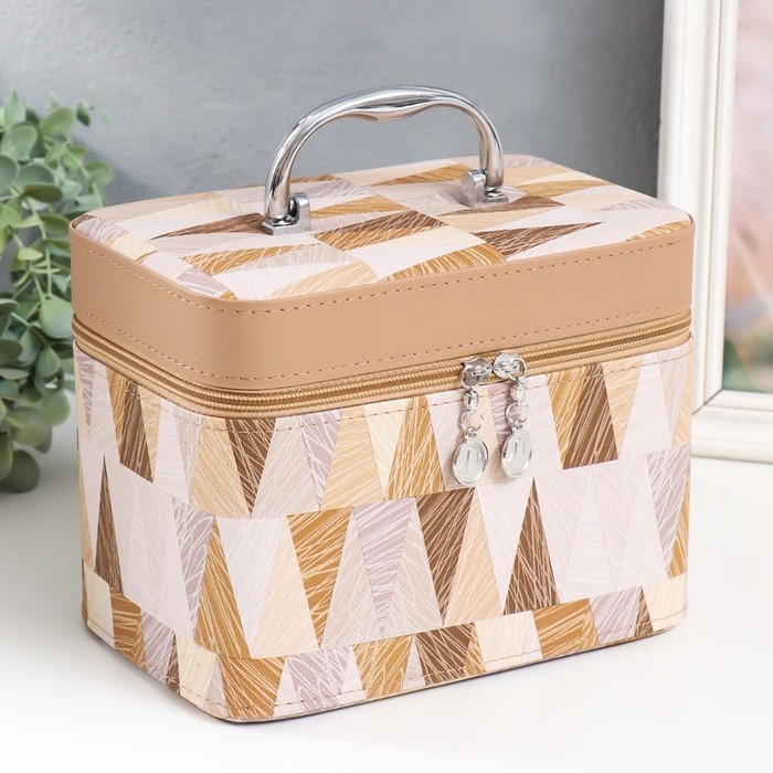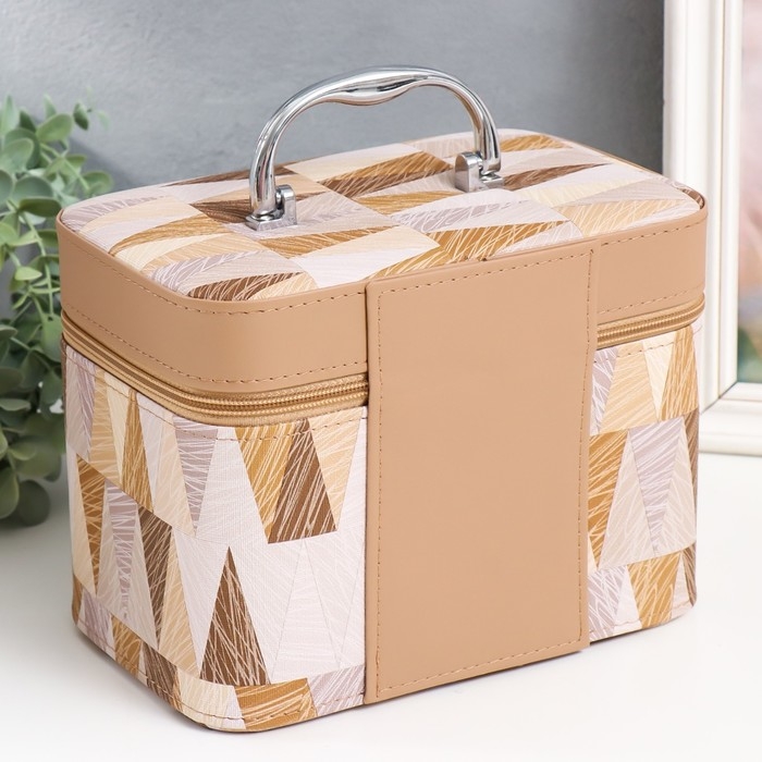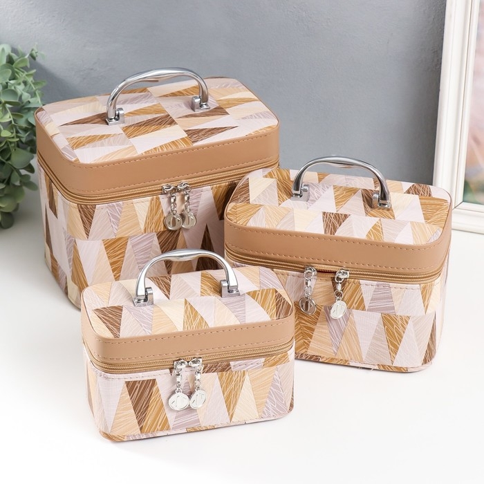Шкатулка кожзам с зеркалом "Треугольники. Беж" н-р 3 шт 18х10х12,5 21х13х15,5 23х15х18,5 см