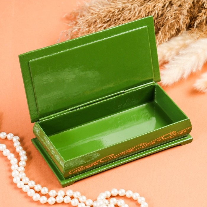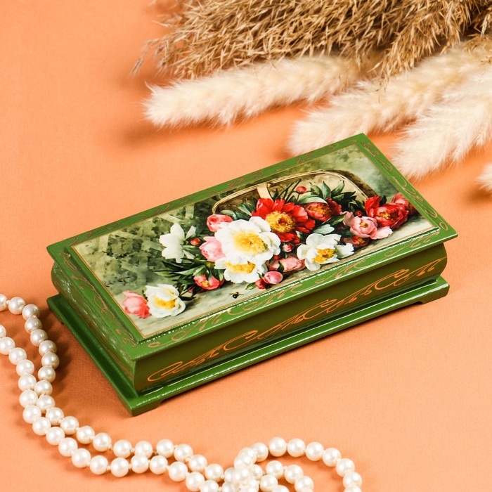 Шкатулка - купюрница «Букет цветов», зелёная, 8,5×17 см, лаковая миниатюра