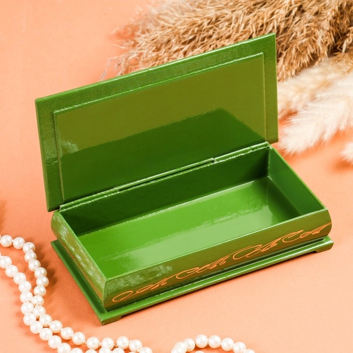 Шкатулка - купюрница «Узор из цветов», 8,5×17 см, зелёная, лаковая миниатюра