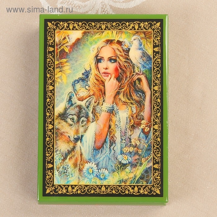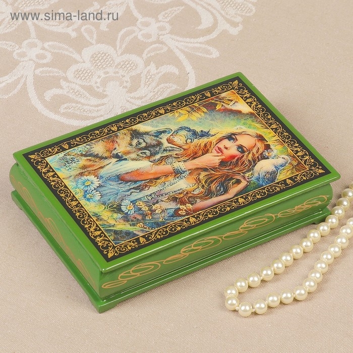 Шкатулка «Лесная дева», зелёная, 11×16 см, лаковая миниатюра