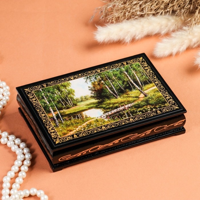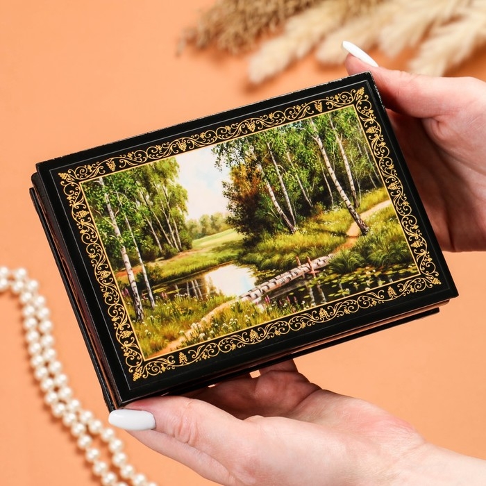 Шкатулка «Мостик через ручей», 11×16 см, лаковая миниатюра