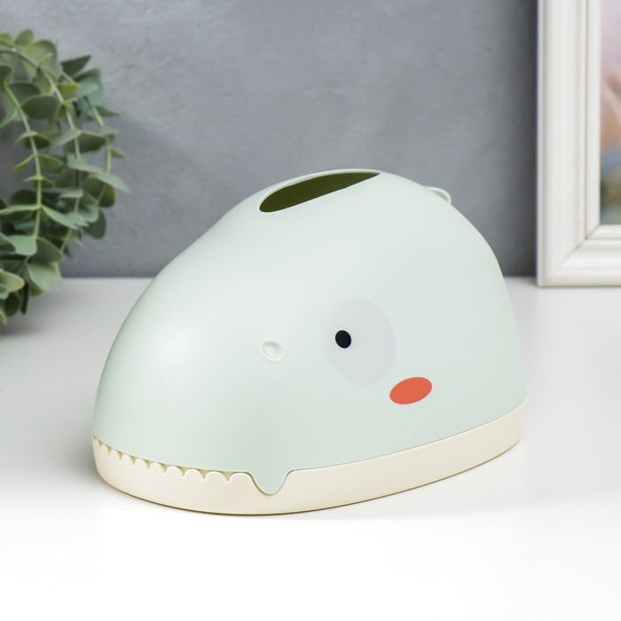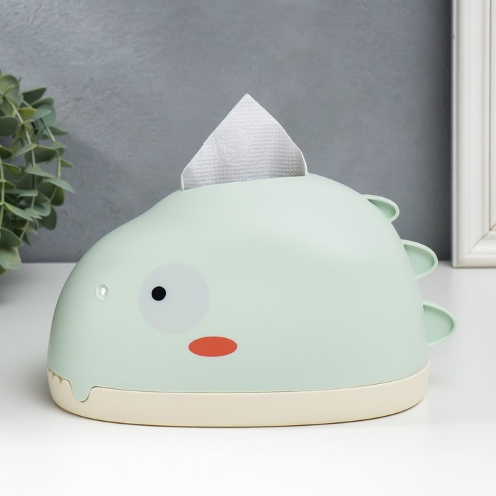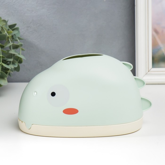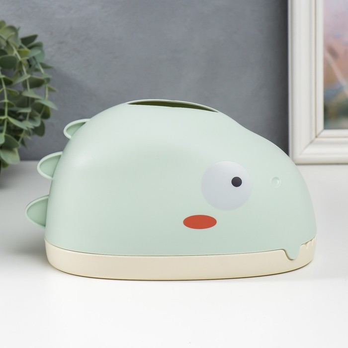 Шкатулка пластик для салфеток "Динозавр" светло-зелёная 12х12х21 см