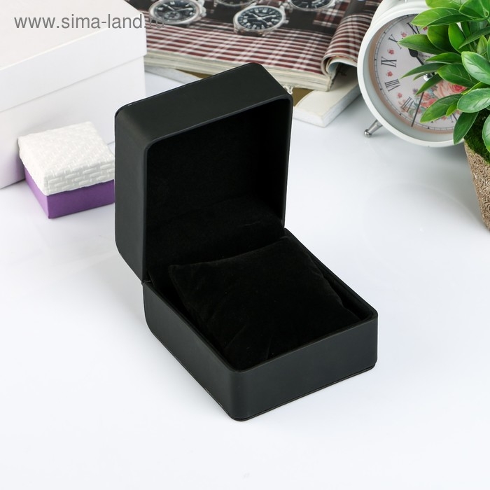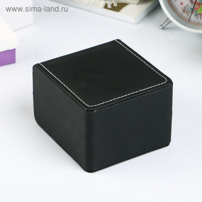 Шкатулка под часы 1 отделение "Чёрная с белой строчкой" матовая 7,5х11х10,3 см