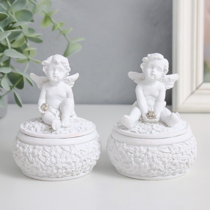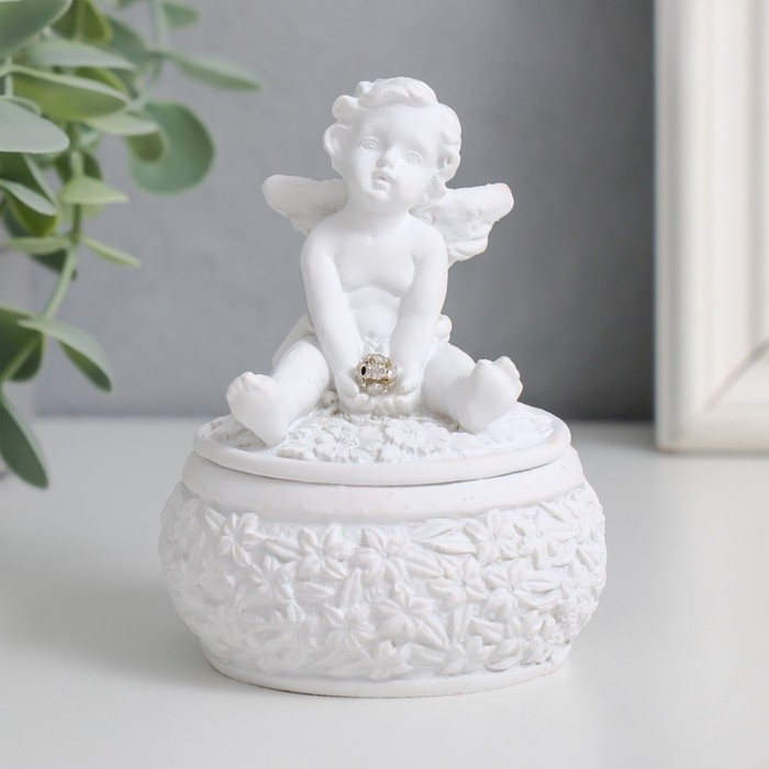 Шкатулка полистоун "Белоснежный ангел в цветах" МИКС 7х7х9 см