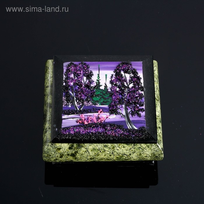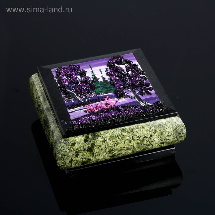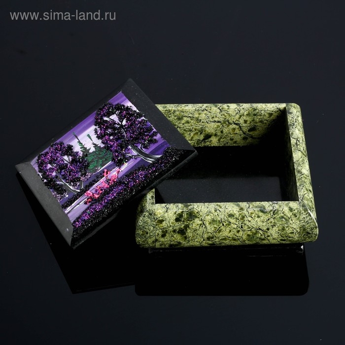 Шкатулка с пейзажем "Ночь", каменная крошка, змеевик
