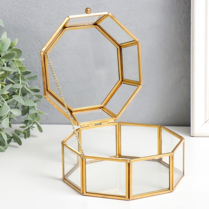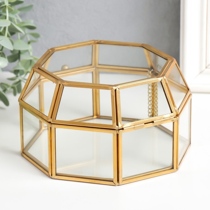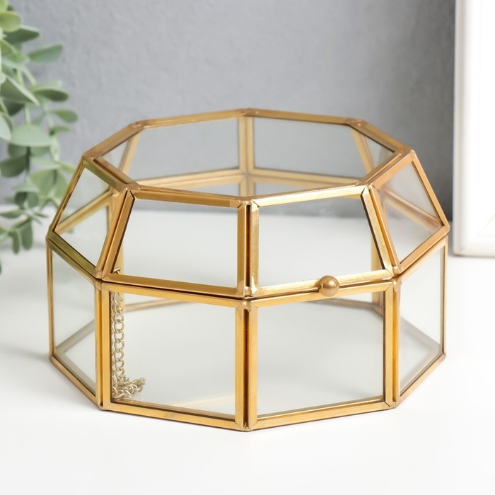 Шкатулка стекло с металлическим каркасом "С гранями" золото 8,5х15,5х14,5 см