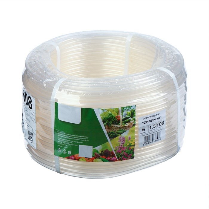 Шланг пищевой, ПВХ, 6 мм, 100 м, прозрачный