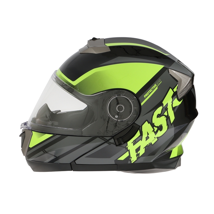 Модулярный шлем - это защитный головной убор, с поднимающейся подбородочной частью. Этот тип шлема представляет собой комбинацию полнолицевого и открытого шлема, что делает его универсальным и удобным для использования в различных условиях. Шлем модуляр обеспечивает высокий уровень защиты головы и лица мотоциклиста от возможных травм и повреждений на дороге. Кроме того, модулярный шлем оснащен встроенным солнцезащитным визором, который помогает защитить глаза мотоциклиста от яркого солнечного света. Модуляр также имеет систему вентиляции со шторками для регулировки обдува, которая обеспечивает достаточное количество свежего воздуха внутри шлема, что позволяет мотоциклисту чувствовать себя комфортно даже в жаркую погоду. Внутренняя съемная подкладка выполнена из качественных материалов и не имеет резких, ярко выраженных запахов. Шлем изготовлен из качественного ABS пластика, который в свою очередь обладает долговечностью, высокой механической прочностью.