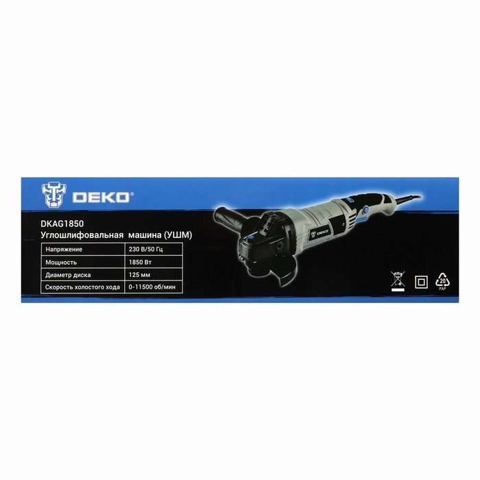 Шлифмашина угловая DEKO DKAG1850, сетевая, 1850 Вт, антивибрационная рукоятка, 11000 об/мин 967103