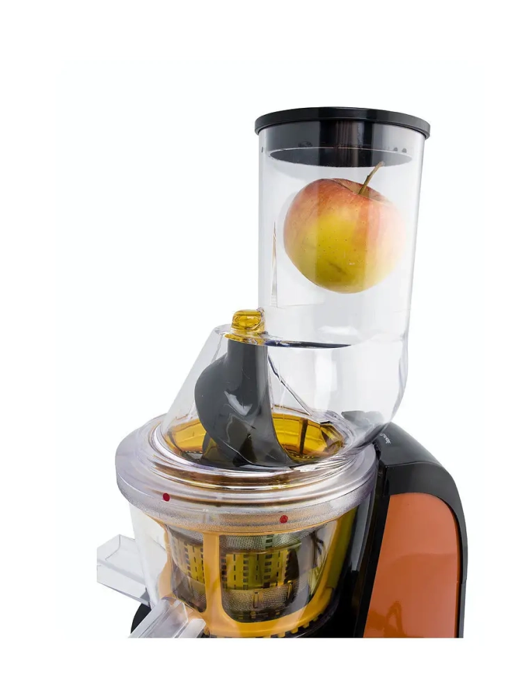В отличие от обычной центробежной высокоскоростной соковыжималки, работающей при 1000-24000 об/мин и потребляющей до 1500 Вт электроэнергии, шнековая соковыжималка работает на низких скоростях вращения, около 70 об/мин, и потребляет всего 150 Вт. Однако, несмотря на малую скорость вращения, шнековая соковыжималка отжимает сок так же быстро, как и традиционная центробежная. Спиралевидный шнек-пресс из ультрапрочного материала дробит и прессует продукт, а затем продавливает мякоть через фильтр, отделяя жмых от сока. Эта технология позволяет сохранить гораздо больше питательных веществ, содержащихся в овощах и фруктах, и получить сок с высоким содержанием клетчатки и растительных ферментов, являющихся природными антиоксидантами.