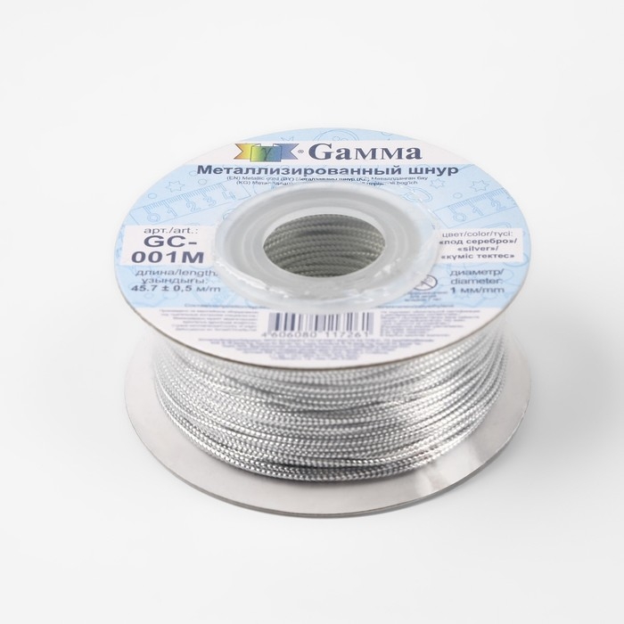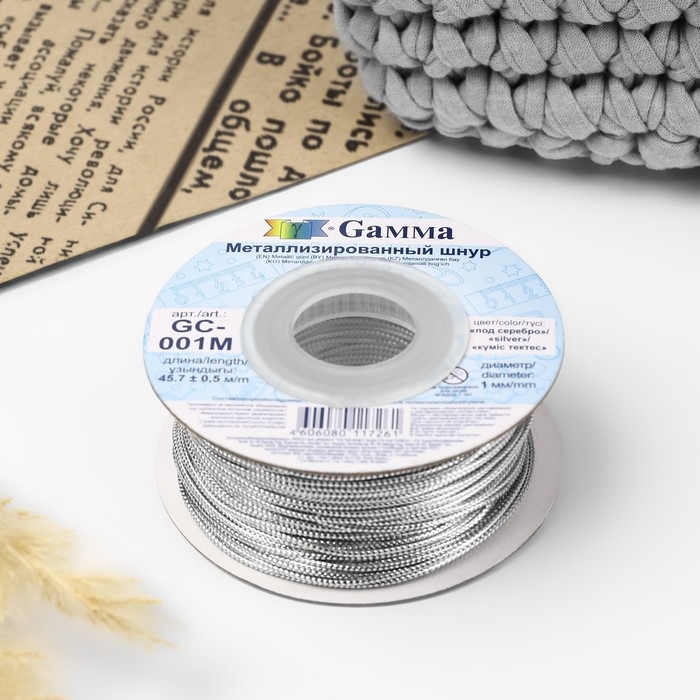 Шнур для плетения, металлизированный, d = 1 мм, 45,7 ± 0,5 м, цвет серебряный