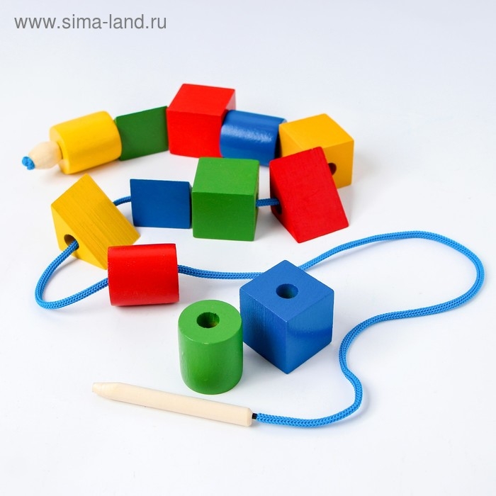 - Стимулирует логическое мышление: малыш учится соотносить отверстия и шнурок, подбирать цвета и формы.