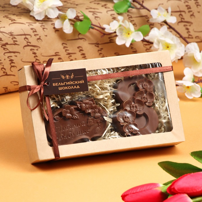 Шоколадные фигурки, 2 в 1 «Любимой бабушке + 8 марта. Орхидеи», 160 г
